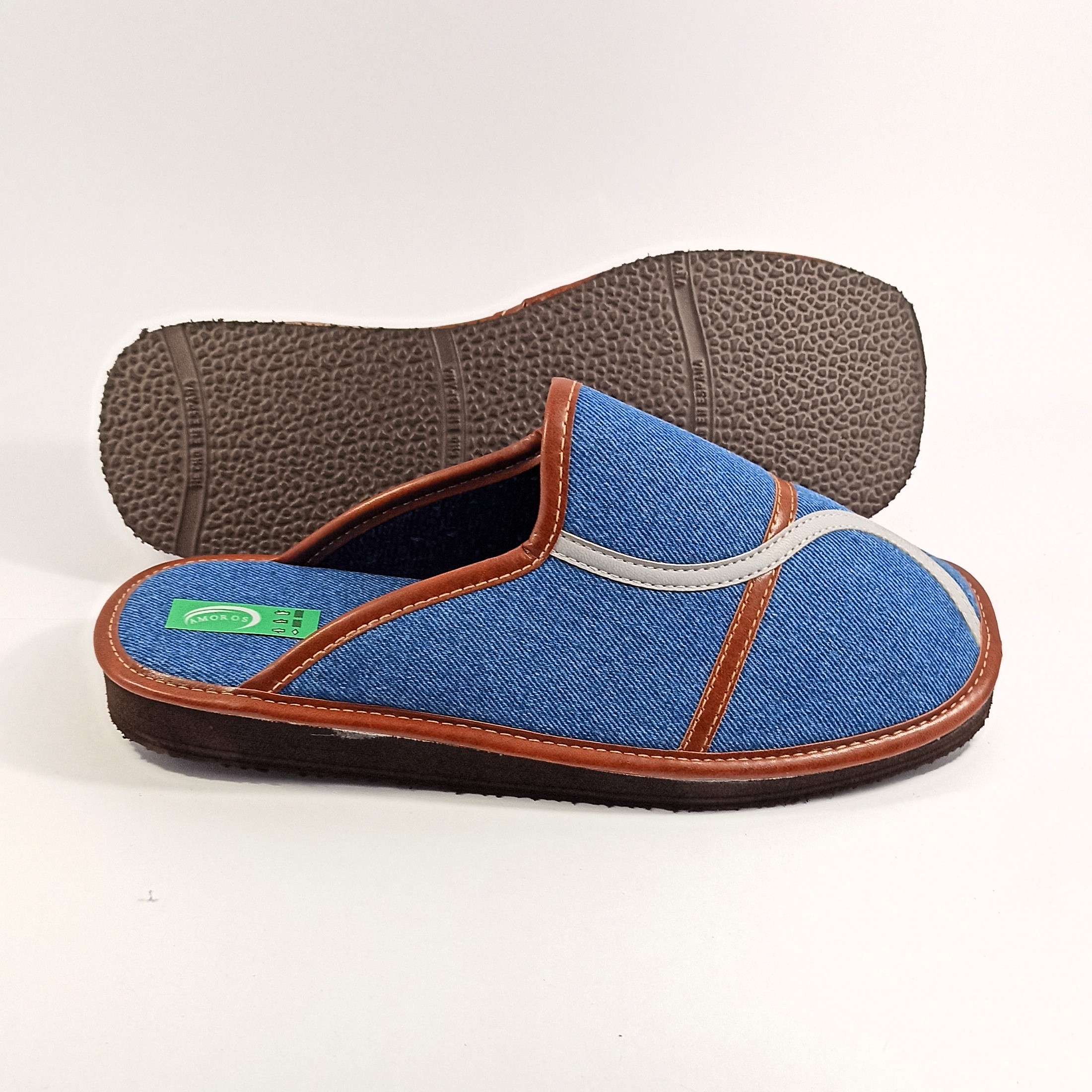 Chinela para hombre de casa, fabricado en tela vaquera y forro de toalla. Marca AMOROS.