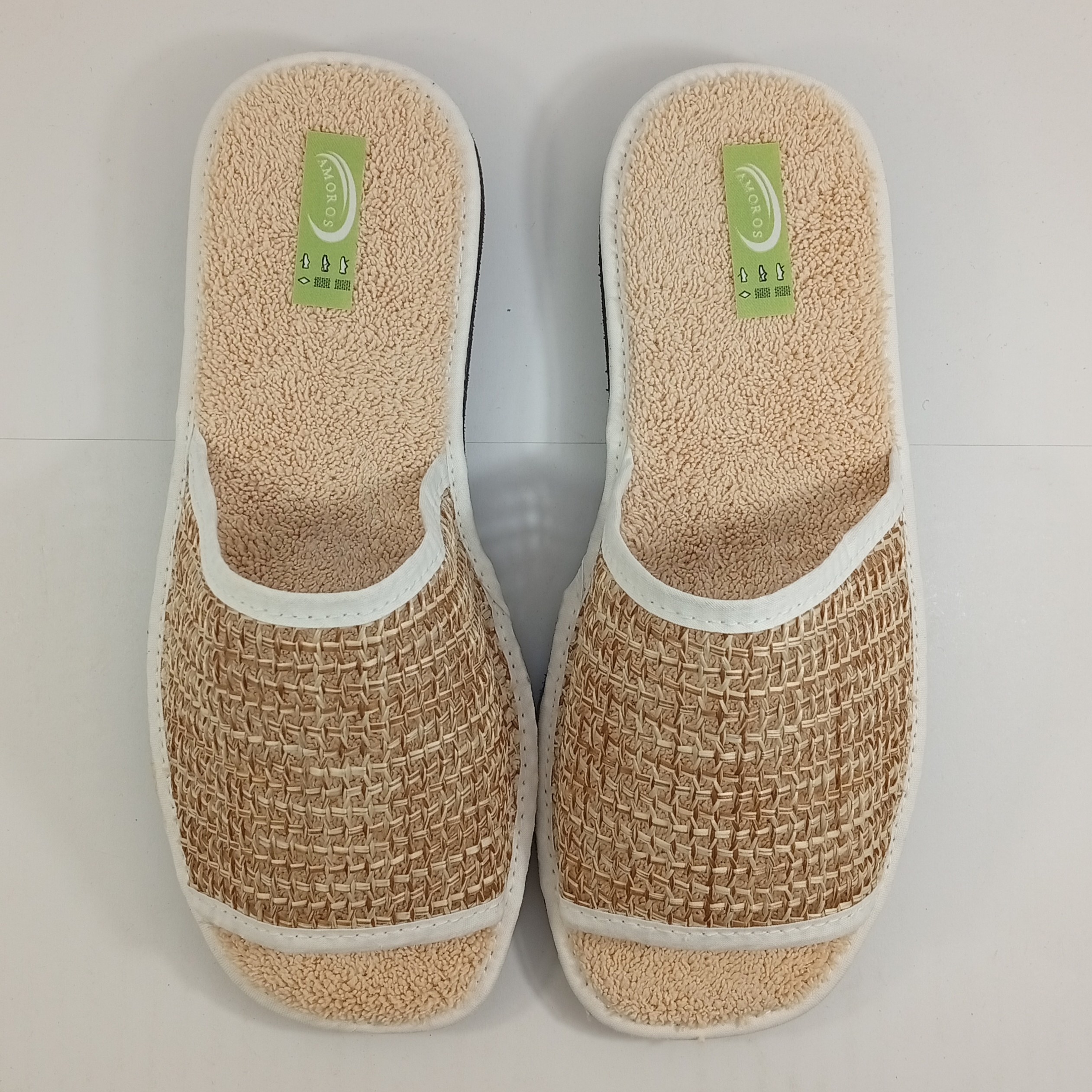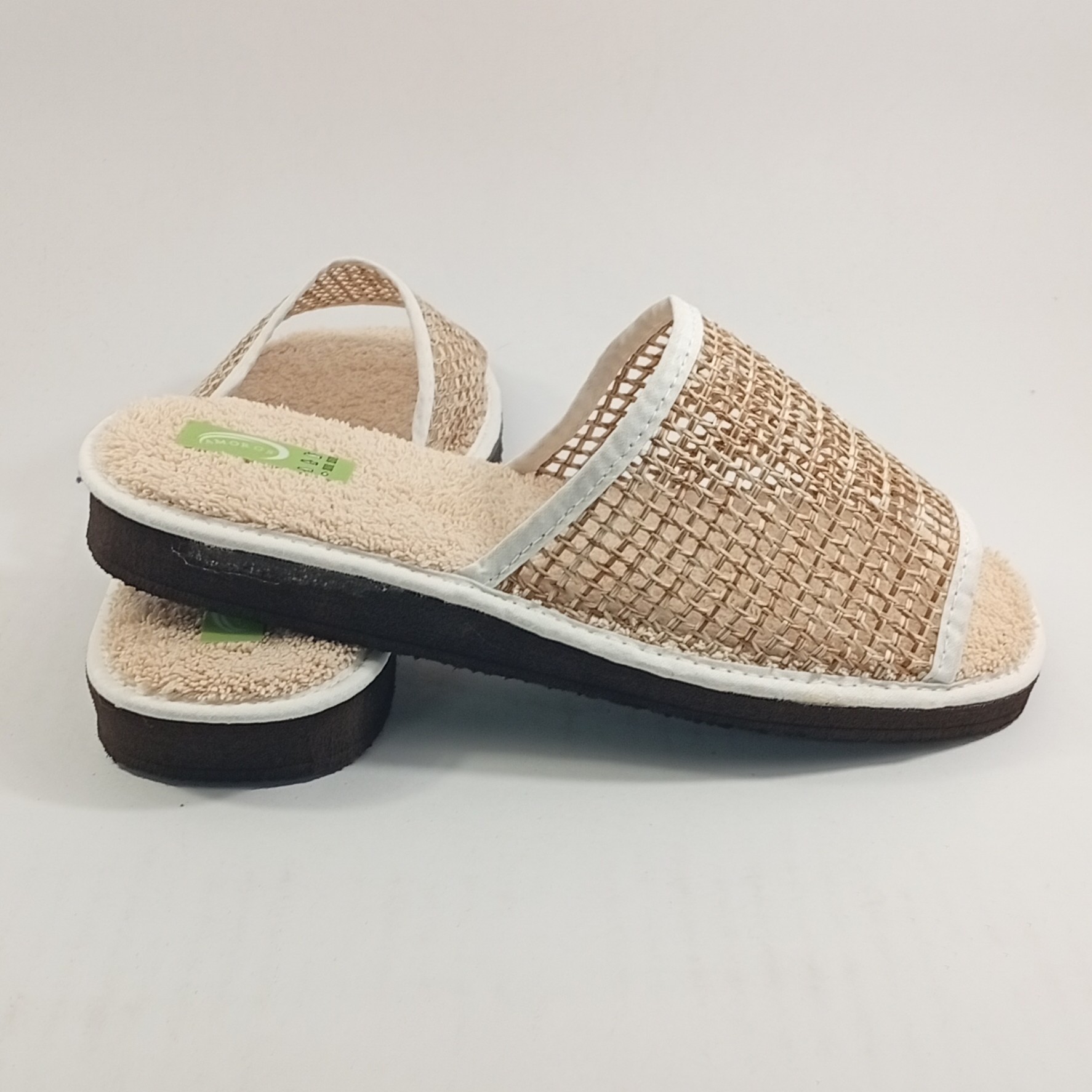 Pantufla tipo chinela para mujer, fabricada en tejido de rejilla y plantilla de toalla 100% algodón, muy suave, ligera y cómoda. Incorpora suela microporosa antideslizante, ideal para caminar con seguridad por casa. Diseño moderno , perfecta para uso diario en primavera y verano.